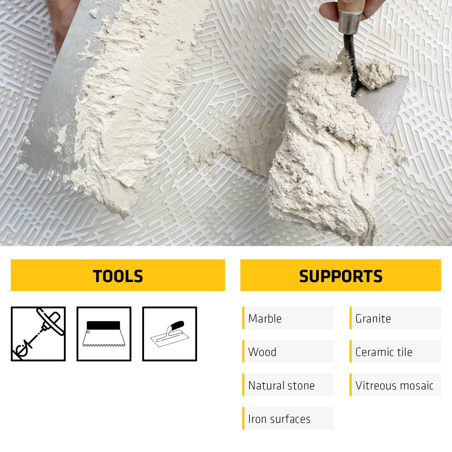 - Hardens without shrinkage, preserving integrity of natural stone or moisture-sensitive materials.