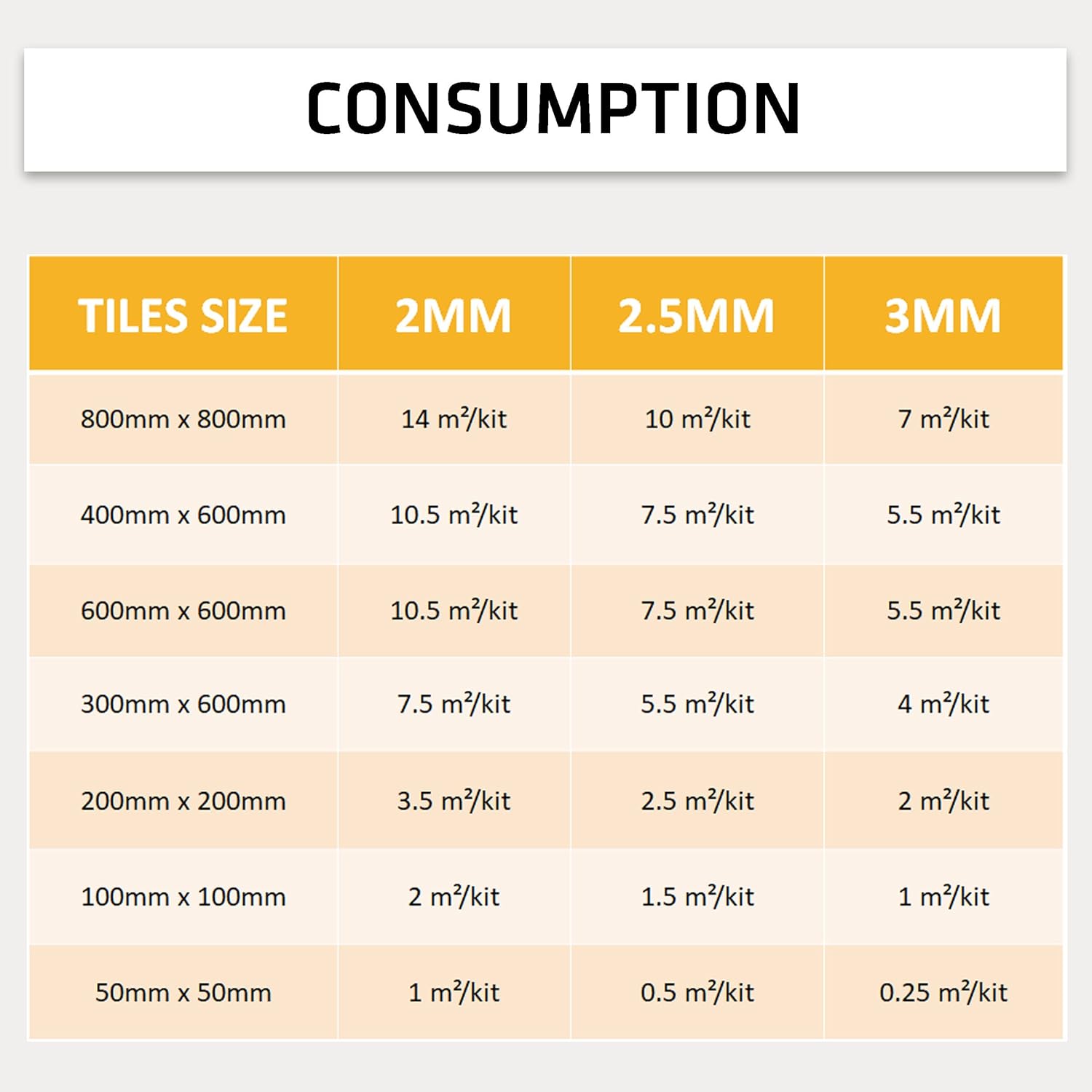 Actual coverage may vary based on tile size, joint depth, and application conditions.